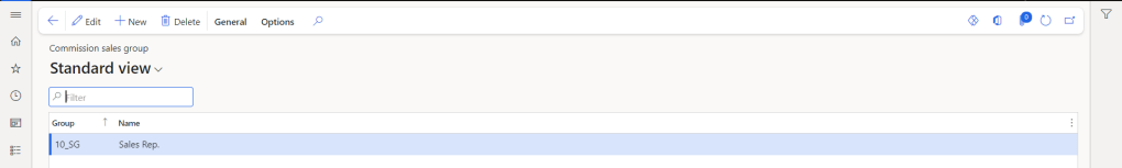 Once you have defined the sales groups, User can add the salespeople that belong to these groups. Click on General>Setup> Sales rep in the Commission sales group form.