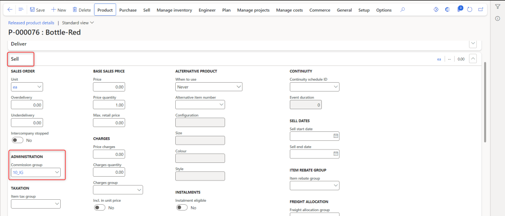 Select the product and expand the Sell fast tab. Assign the commission group that you created earlier as highlighted below.